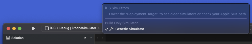 To work around this issue, try downloading and installing an older version of Xcode from Apple (you can look for guidance on which Xcode version to use from the Xamarin.iOS release notes. After installing the new version of Xcode, restart Visual Studio and load your project to verify your available simulator options.